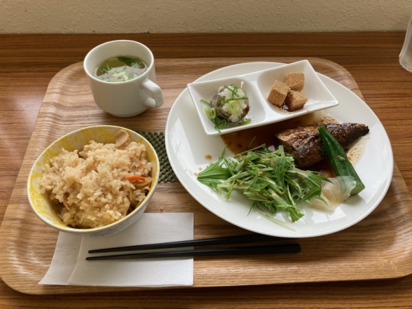 今週も刈谷市障がい者支援センター内のカフェ「シンフォニー」のランチに行ってきました。メニューはたけのこご飯とサバの味噌煮で、旬の味覚をお値打ち(税込600円)に楽しめました。