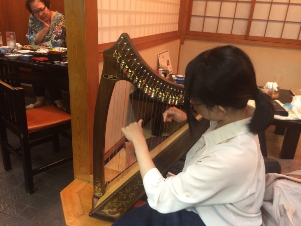 夕食を頂いたお店で思いがけない出会いがあり、ミニハープの演奏を聞かせて頂きました。