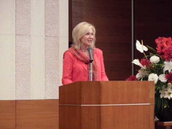 総会終了後は、市庁舎食堂で歓迎レセプションが行われました。クロンビー市長は、36年間市長を務めたヘーゼル・マッキャリオンさんの後継として、2014年に着任されて以来初めての来刈です。