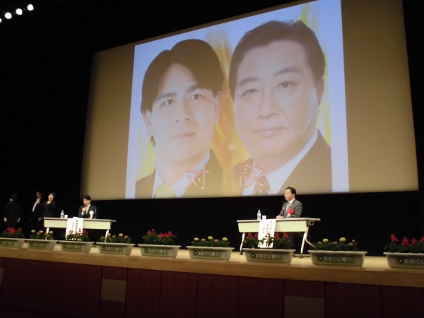 大西健介衆議院議員と、野田佳彦元総理による時局講演会が総合文化センターで行われました。