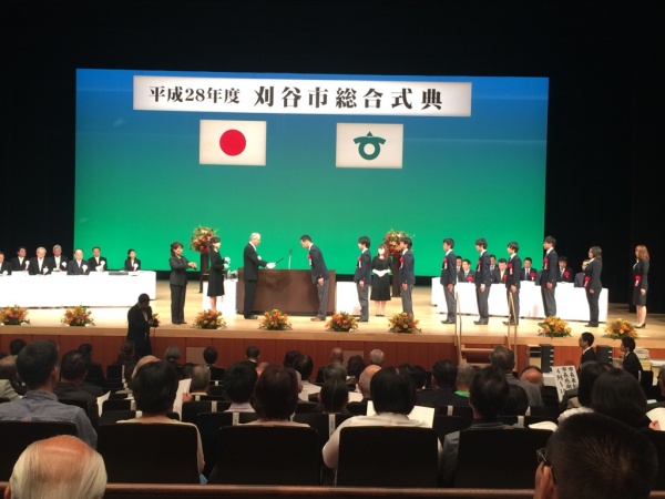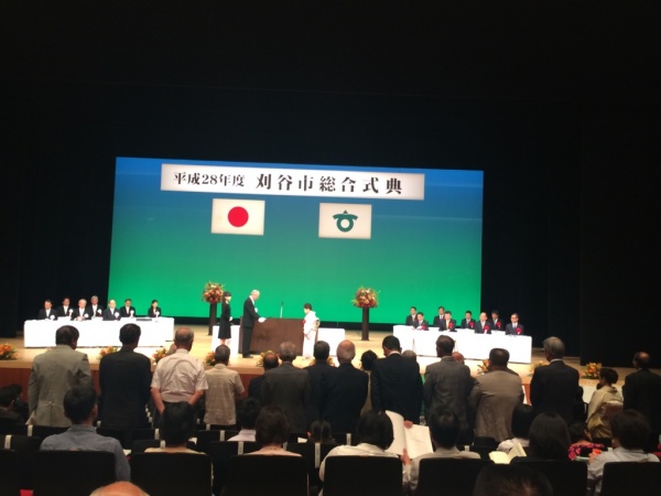 今年も刈谷市総合式典が開催され、市に貢献された人や団体を表彰されました。