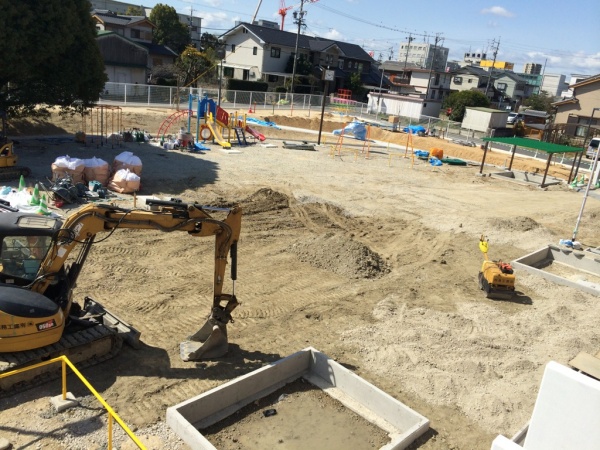 園庭はまだ工事が続いていますが、広々としています。