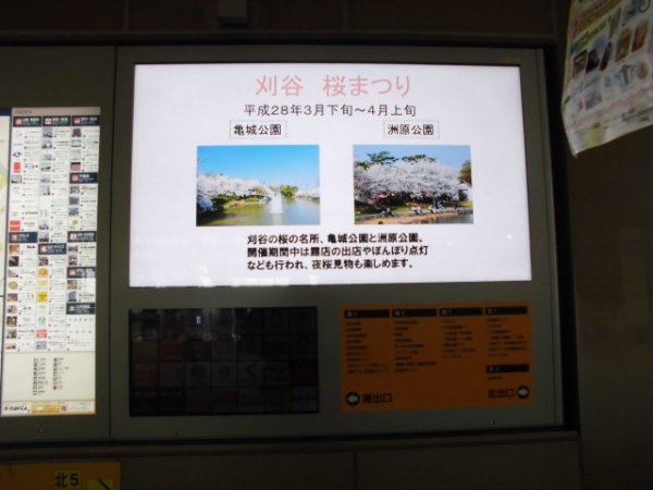 JR刈谷駅でデジタルサイネージ(電子看板)による電子公告が始まりましたので、早速見てきました。ディスプレイは思ったよりコンパクトでしたが、民間企業の宣伝映像に加え、刈谷市のPR映像が流されていました。この取り組みをきっかけとし、映像や音声による刈谷市のPRをどんどん進めて頂きたいと思います。