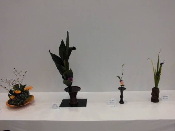 運動会後は毎年恒例の『華展・山草展・茶会』で、生け花の力作を拝見しました。色使いも花の種類も様々で、どの作品も個性的です。ご自身も出品しておられる知人の方が丁寧に説明してくれましたので、それぞれの作品の意図がある程度理解できました。華道は奥が深いですね。誠にありがとうございました。