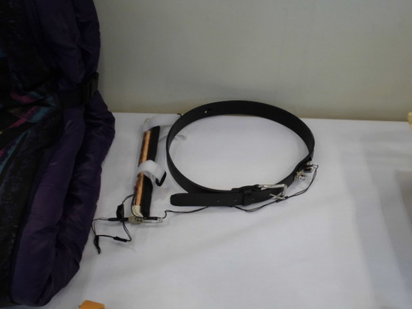夜間のランニング時に光るベルトです。腕に装着したコイル棒が振動し、ベルトのLEDライトが点灯します。