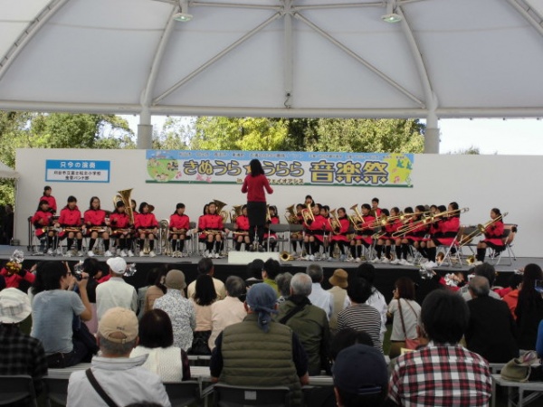 定住自立圏域内の子ども達の吹奏楽演奏や、フォークソングの演奏が行われていました。好天のもと、子ども達の演奏を見つめるご家族、おじいちゃんおばあちゃんを見ると、こうした発表の場が多いのは良い事だと感じました。頑張った子ども達をしっかりほめてあげて欲しいですね。