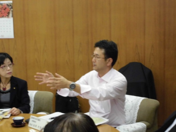 荒川区役所での視察で質問する私。