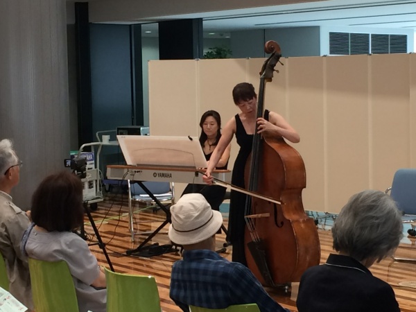 後半はコントラバスと電子ピアノの演奏でした。コントラバスの演奏には体力が必要との事です。重厚で温かい音色でした。