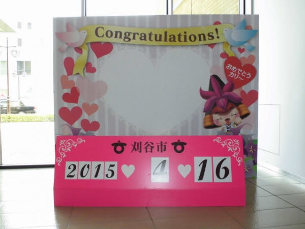 4月から始まった結婚お祝い事業が好評です。この事業は、刈谷市に婚姻届を提出したカップルを対象に、その場で記念撮影をするとともに、記念品を贈呈する事業です。本日、市庁舎ロビーに撮影用のブース(写真)も設置されました。先日、私も1組のカップルを見かけましたが、照れながらもしっかりと写真に収まっていました。幸せそうなお二人を見ると、こちらも元気を貰えますね。職員さんの発案との事ですが、一生の記念になる良い事業だと思います。刈谷は粋で、気の利いたまちですよ!皆さん、ぜひ刈谷に住んで下さいね!!