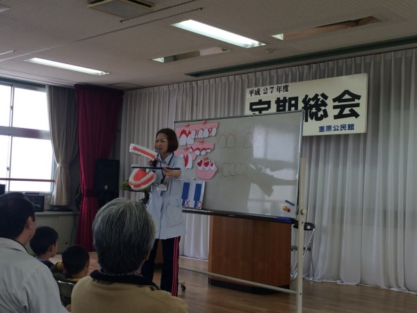 重原地区の公民館定期総会にお招き頂きました。会場の市民館までは徒歩で10分程度ですが、道すがらの風景は私の幼少時とさほど変わらず、走り回って遊んでいた頃をなつかしく思い出します。活動報告や会計報告等は無事承認され、その後は歯と健康に関する講義と健康クイズが行われました。虫歯がなかなか治らないと糖尿病の可能性があるなど、興味深い話も聞く事ができました。地域の絆を大切にし、地域で頑張る皆さんをしっかりサポートしていきたいと思います。関係各位におかれましては今後とも宜しくお願い致します。