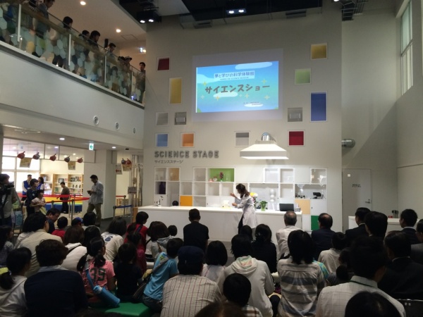 サイエンスショーでは液体窒素を使った実験が行われ、2階の立ち見も出る大盛況でした。