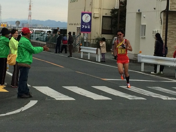私の勤務するトヨタ紡織の陸上部を応援する為、急いで田原市に移動しました。同部は刈谷市のホームタウンパートナーでもあります。今回は元旦のニューイヤー駅伝の予選も兼ねる中部実業団駅伝大会で、同チームの3連覇がかかる重要な大会です。ゴールまでには何とか間に合い、途中経過がわからないまま、ゴール地点に近い晩田東交差点で選手を待ちました。まずトヨタさんが通過しましたが、後続がなかなかきません。続いてNTNさんが通過し、3連覇が難しい事がわかりました。いよいよ次かと思いきや、またまたトヨタさんが通過(オープン参加のBチームで順位はつかず)。そして紡織が通過し、3位という結果になりました。榎木監督は「自分の指導不足」と反省しておられましたが、最終目標はあくまでニューイヤー駅伝です。万全の状態で望み、目標の5位以内を達成して頂きたいと思います。選手の皆様、応援、そしてボランティアでチームを支えて頂いた皆様、お疲れ様でした。 頑張れ!トヨタ紡織陸上部!!
