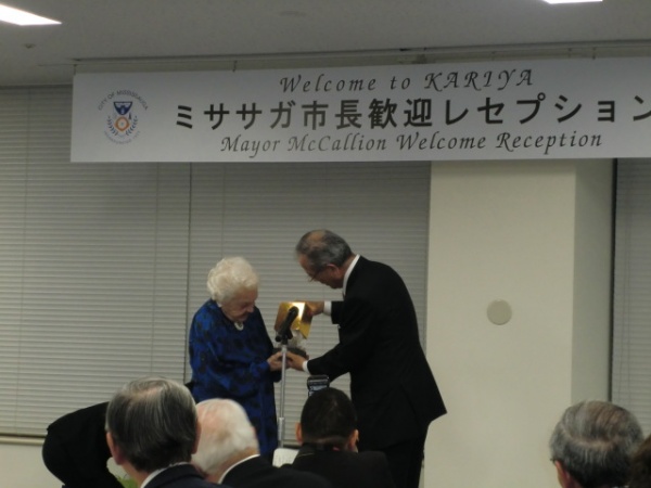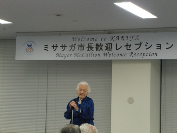 1981年から刈谷市と姉妹都市提携を続けているカナダ・ミササガ市のヘーゼル・マッキャリオン市長が来刈され、歓迎レセプションが行われました。ミササガ市はオンタリオ湖畔にあり、人口は約71万人でカナダで6番目に大きい都市です。マッキャリオンさんは市長となり36年目、御年なんと93歳ですが、年齢を全く感じさせない立ち振る舞いやユーモアを交えたスピーチは驚異的です。挨拶で「グローバルな視点より、刈谷とミササガをチームと考え、今後も交流していきましょう」とおっしゃった事が印象的でした。ミササガも産業が集積する国際都市であり、日系企業も約80社が進出しています。グローバルでつながる大切さを理解されているがゆえに、刈谷との交流を重視し、続けてきたのだと思います。この絆を更に強固にしながら、刈谷も国際感覚を磨いて行ってほしいと思います。