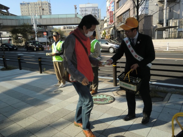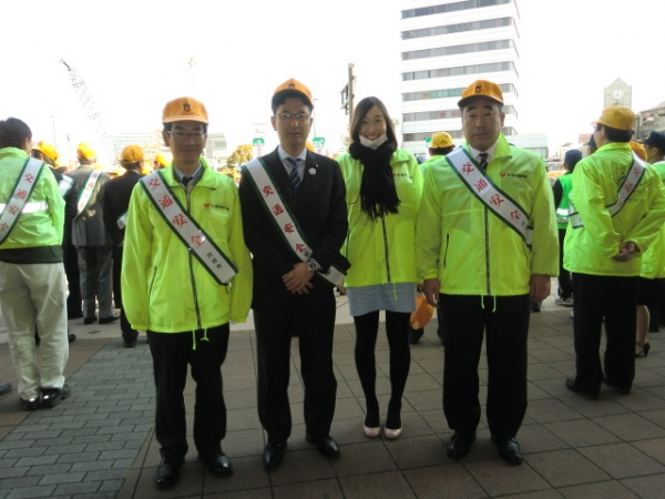 毎年恒例の交通安全キャンペーンが刈谷駅前で開催されました。早朝より市内の関係団体が集まり、「子どもと高齢者をやさしい気持ちで守ロール」と命名したパンを通勤通学中の皆さんに配布しました。毎年パンをご提供頂いている敷島製パンさんのご厚意に厚く御礼申し上げます。昨日までの愛知県内の交通死亡事故件数は58件で、対前年比で6人減ってはいますが、全国ワースト1位となっています。刈谷市においては、関係各位のご尽力により、昨年は370日間の交通死亡事故ゼロを継続しましたが、12/1に死亡事故が発生、H26年は1月に早くも死亡事故が1件発生しています。大切な物を全て失ってしまう死亡事故は、何としても撲滅しなくてはなりません。皆様のご理解ご協力を心よりお願い申し上げます。