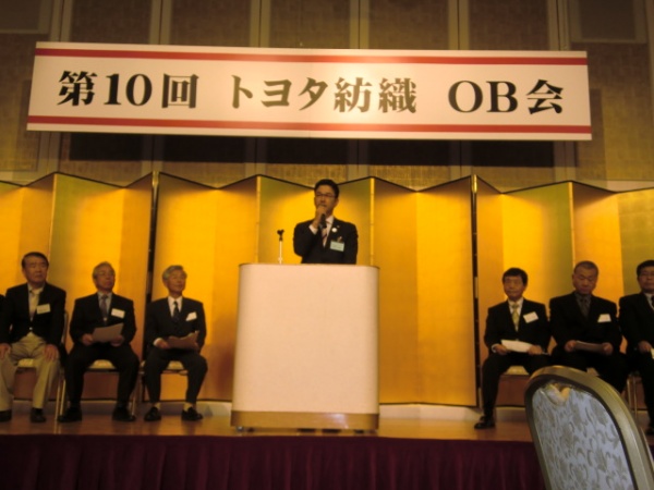 第10回トヨタ紡織OB会が豊田市内で開催されました。今年はアラコ、高島屋日発工業、豊田紡織の3社が合併後10年の節目の年にあたり、時の流れの速さに驚きます。毎年の光景ですが、再会を喜び合う姿があちこちで見られました。豊田社長は「グランクラスシートやBMWのi3用シートなど新規ビジネスを開始しました。先日放映されたLEADERS(国産自動車の生産に命を懸けた人々のドラマ)のように、役員一人一人がリーダーとなり、2020年ビジョンの実現に取り組んでいきます」と挨拶されました。私もお世話になった方に久々にお会いしたり、旧交を温めながら激励やご指導を頂きました。OBの皆様のためにも地域社会への貢献活動を続けていきたいと思います。関係各位におかれましては誠にご苦労様でした。