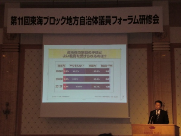 東海ブロック地方自治体議員フォーラム研修会が名古屋市内で開催され、社会保障制度に関する講演を聞きました。講師は長妻昭衆議院議員です。レジュメに日本の現状に関するデータやキーワードが出てきましたので、いくつかをご紹介します。