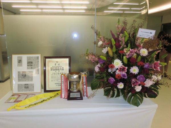 本社ロビーに優勝カップが鎮座しました。