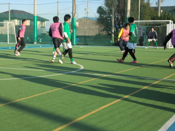 若い人達と心地よい汗をかく事ができました。(ピンク色のビブスが私です)