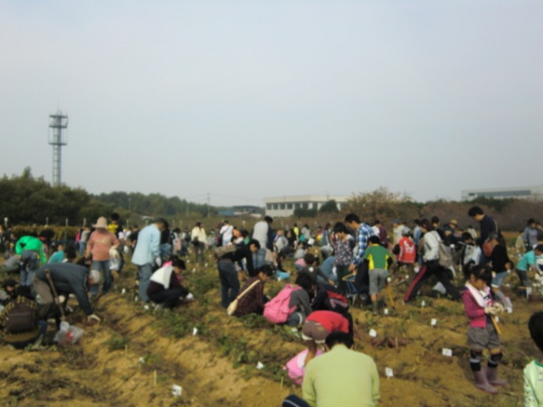 毎年大人気のイモほり大会が市内で行われ、今年もたくさんの組合員の皆さんとご家族、知人の方が参加されました。あいにくの曇り空となりましたが過ごしやすく、絶好のイモほり日和になったと思います。説明も早々にイモほり開始!大人も子供も理屈抜きで楽しめる本当に良いイベントですね。その後はこれも恒例のビンゴ大会と、収穫したイモの大きさを競う大イモ賞の発表が行われます。次のスケジュールの関係でビンゴ後に会場を後にしましたが、楽しそうな皆さんの顔を見ていると私も癒され、活力を頂く事ができました。このイベントは毎年丹精込めてさつまイモを育てて頂いているご一家と、揚げたてのイモを調理して頂くボランティアの皆さんのご協力で成立しています。ご厚意に心より御礼申し上げます。そして大会を運営した組合執行部の皆さん、ビンゴで盛り上げてくれたレク委員の皆さん、本当にご苦労様でした。