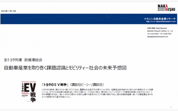 勉強会では、モビリティ社会の未来について、ナカニシ自動車産業リサーチの中西氏による講義を聴講しました。