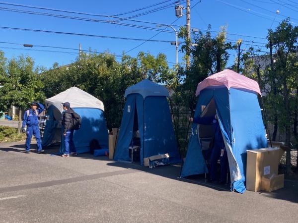 設営されたマンホールトイレ。