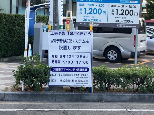 12/4から「歩行者検知システム」の設置が始まり、7日から実験が開始されます。