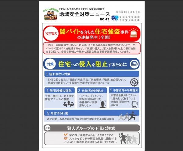 ↓詳しくは「地域安全対策ニュース(愛知県)」をご参照下さい。