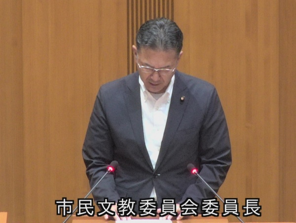 私は市民文教委員会の委員長として登壇し、当委員会に付託された請願と議案の審査結果報告をしました。