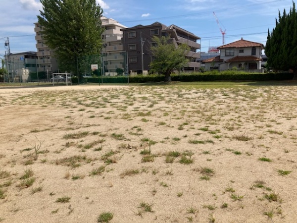 園内に入ると、広場の雑草が枯れ始めている事が一目でわかりました。