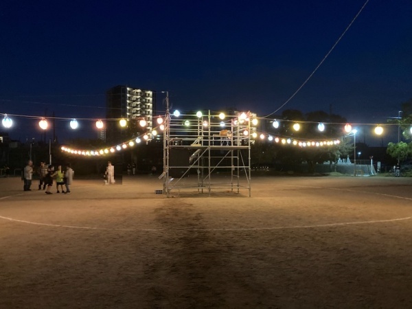 酷暑の中、会場の八枚公園の設営等をして頂いた地区役員の皆様、本当にありがとうございます。今年も盆踊りが開催できるのは、一重に皆様のおかげです。