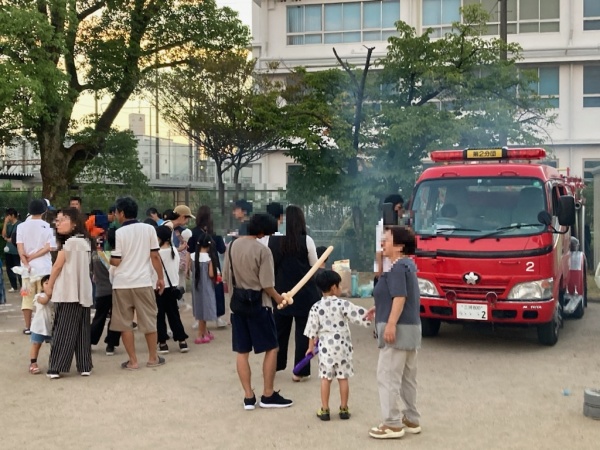 子ども達は消防車に興味しんしんでした。