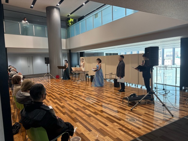最終日恒例のフロアコンサートはソプラノ、バリトン、フルート、電子ピアノによるクリスマスソングの歌と演奏でした。