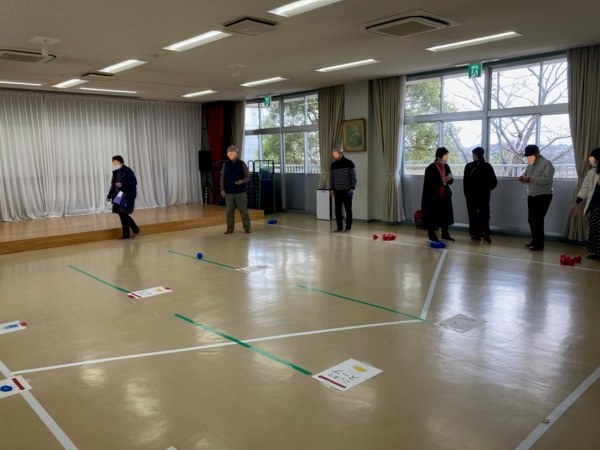 ボッチャのボールを投げるゲームの様子。