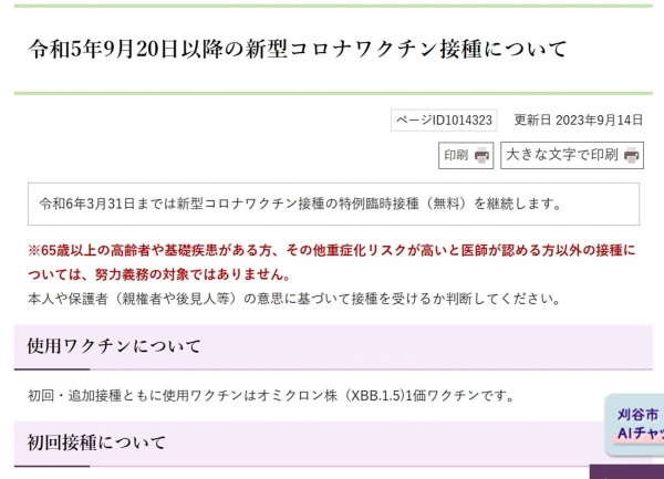 令和5年9月20日以降の新型コロナワクチン接種について|刈谷市ホームページ (kariya.lg.jp)