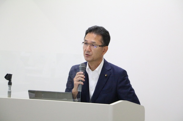 同支部さんから頂いたくらしの相談対応として、駐輪場前の歩道の冠水対策工事を実施した事、カーボンニュートラルへの対応として、体育施設や学校校庭のナイター照明のLED化に目途がついた事などをお話しました。