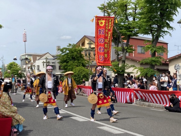 殿や姫、侍など当時の衣装を身にまとった皆さんが、寺横、新栄、司町周辺を練り歩く中で、市指定無形文化財「奴のねり」が行われたり、普段は歴史博物館に展示されている山車も、行列に参加しました。