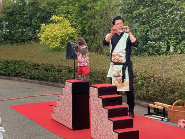 日本の古典芸能の猿回しの実演は、子ども達が大喜びでした。