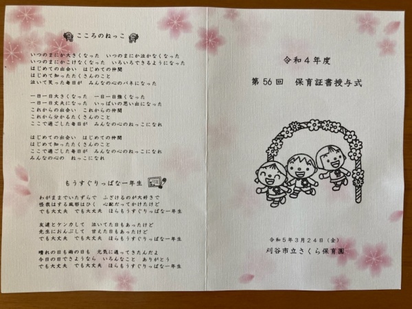 子ども達が歌った「こころのねっこ」「もうすぐりっぱな1年生 」も、元気な歌声と歌詞が心に響きました。(歌詞はパンフレット画像でご紹介しています)