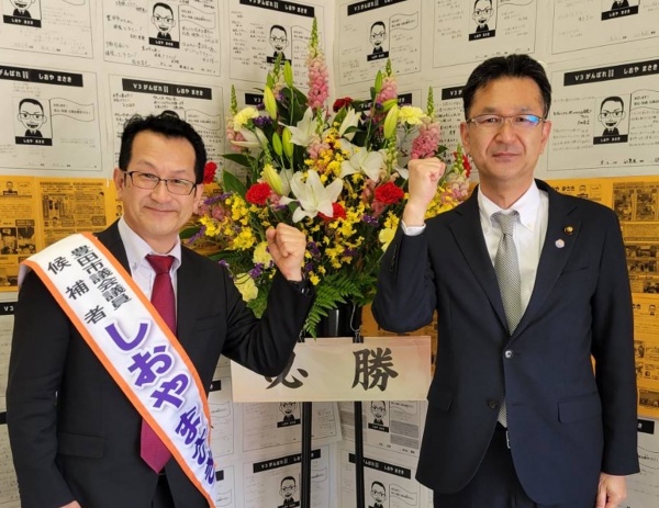 豊田市議選に出馬した塩谷まさき候補と記念撮影。塩谷さん、頑張ってください!
