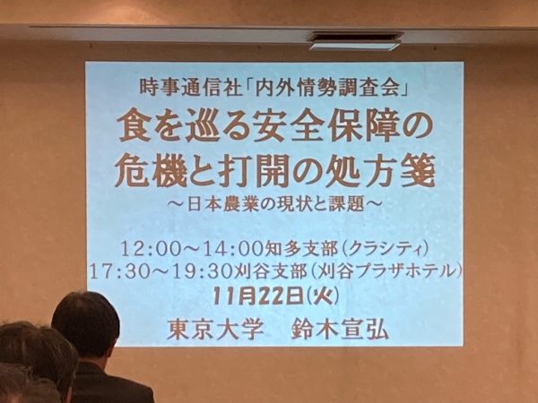 テーマは「食を巡る安全保障の危機と打開の処方箋」で、講師は東京大学の鈴木宣弘氏です。