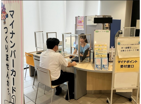 7/19より、市役所1階の東玄関南側にマイナンバーカード申請等専用窓口が設置されました。運転免許証や運転経歴証明書等の顔写真付きの本人確認書類を持参すれば、予約不要(受付順に対応)で申請できます。詳細は市民課(☎62-1009)にて事前にご確認下さい。