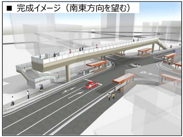3/15(火)より約1年間に渡り、桜町交差点の南北方向に歩道橋を整備する工事が行われます。