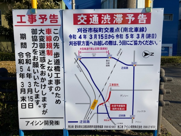桜町交差点周辺に工事の予告看板が設置されています。