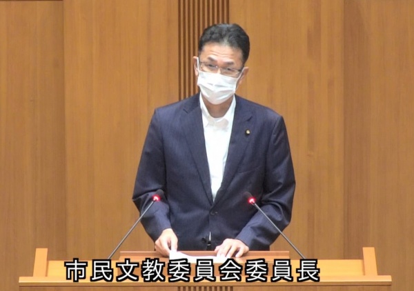 私は市民文教委員会委員長として、当委員会が所管する議案の審議結果を報告しました(写真)。