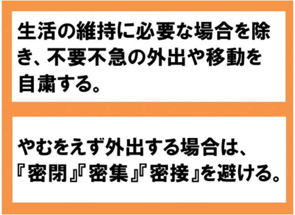 皆様におかれましては、『3密の回避』『不要不急の外出自粛』などの感染拡大防止にご協力頂けますよう重ねてお願い申し上げます。