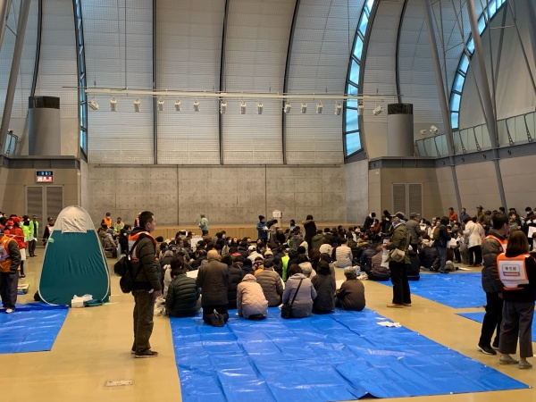 各町の最寄の街区公園に集合した後、300人以上の方が産業振興センターに避難をされました。
