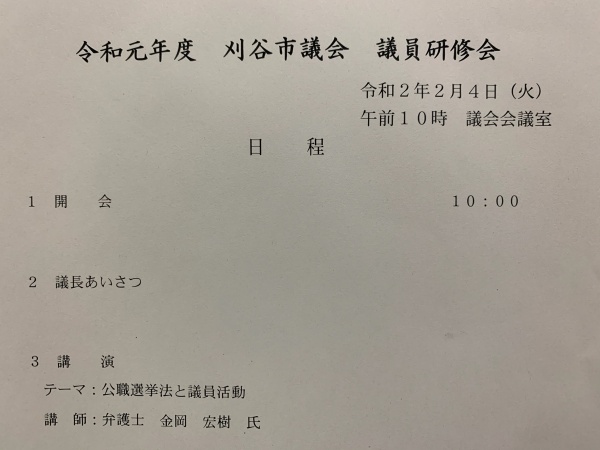 刈谷市議会の議員研修会で、公職選挙法について学びました。