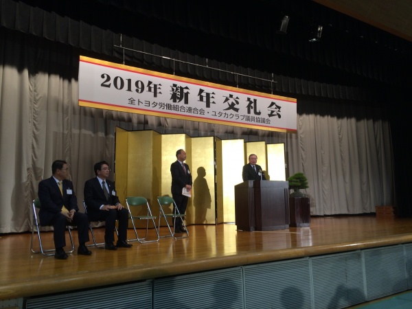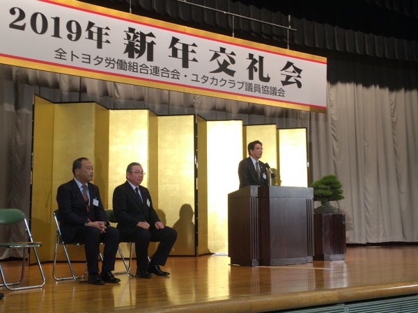 本日、全トヨタ労連とユタカ議協共催の新年交礼会が行われ、加盟組合、トヨタグループ企業、各級議員、県内主要市町村の首長各位が一同に会しました。