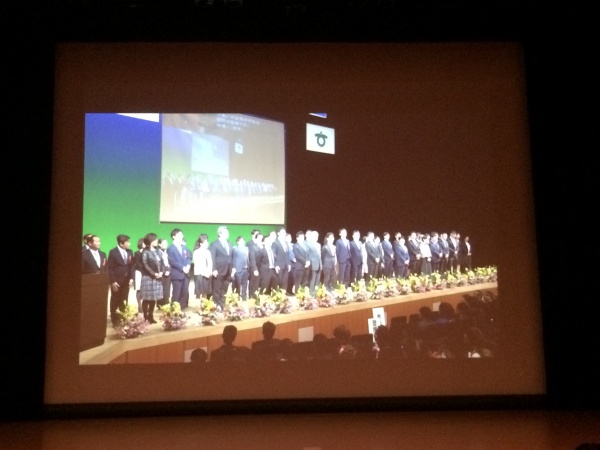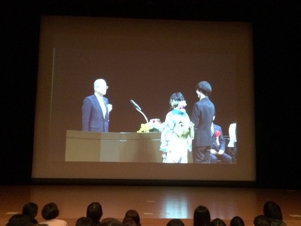 大ホールが満員となり、保護者の皆さんや私達議員は、小ホールのモニター越しの観覧となりましたが、次代を担う多くの皆さんが出席されたのは大変喜ばしい事です。