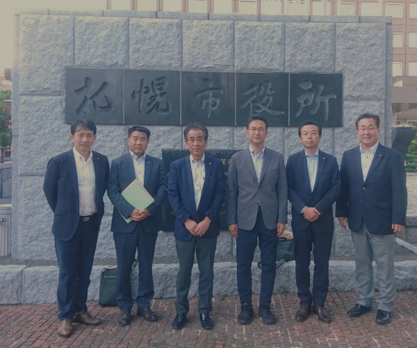 札幌市役所前にて。